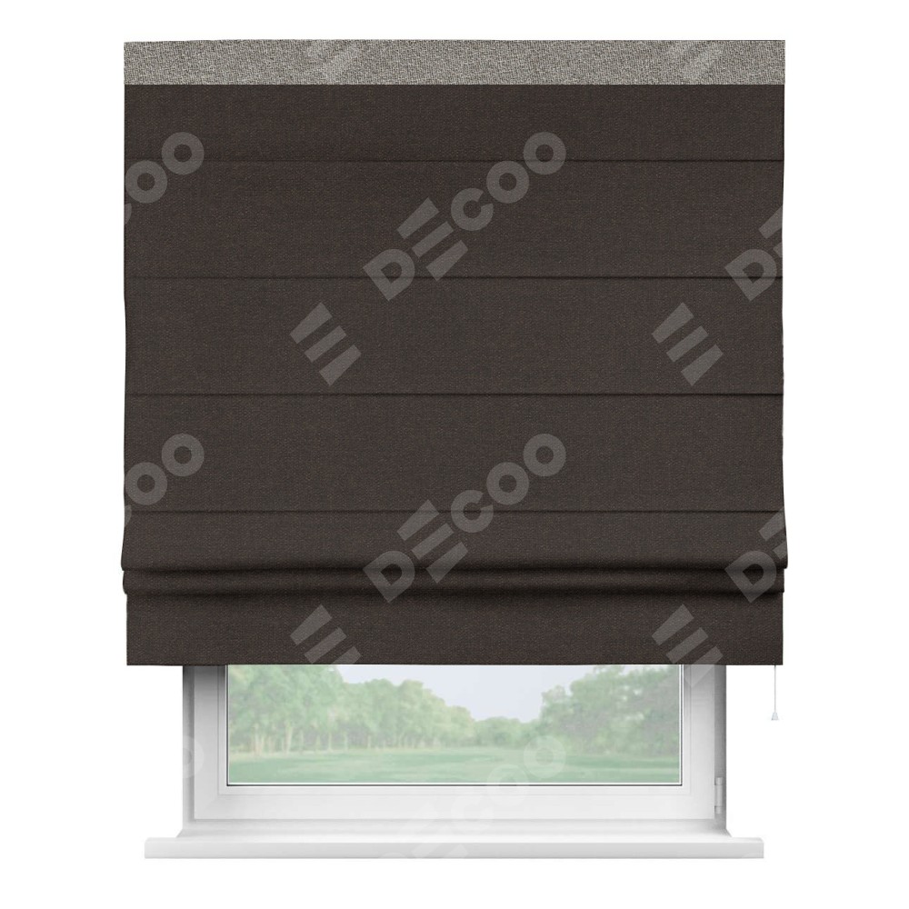 Римская штора «Кортин» для проёма, лён тёмно-коричневый, с кантом Кинг