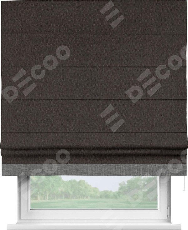 Римская штора «Кортин» для проёма, лён тёмно-коричневый, с кантом Джестер