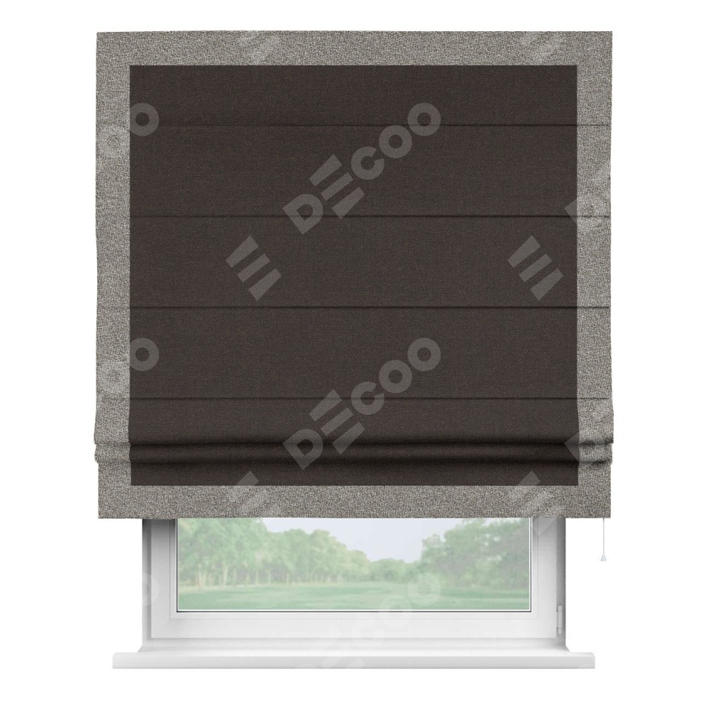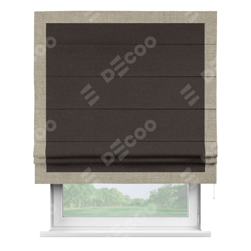 Римская штора «Кортин» для проёма, лён тёмно-коричневый, с кантом Чесс