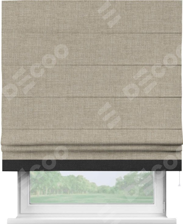 Римская штора «Кортин» для проёма, лён бежевый, с кантом Джестер