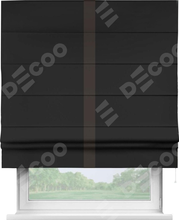 Римская штора «Cortin» для проёма, блэкаут однотонный черный с кантом Хайвэй