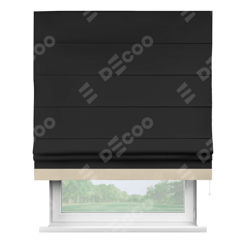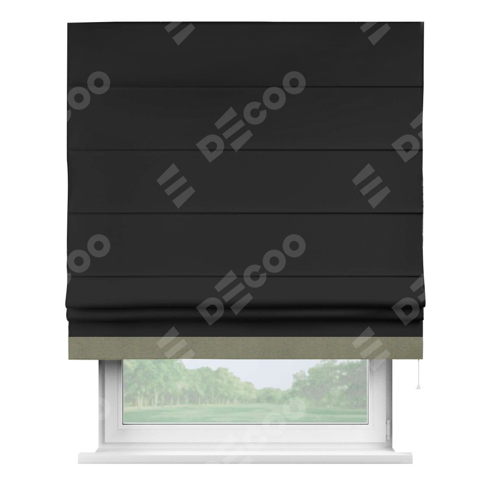 Римская штора «Cortin» для проёма, блэкаут однотонный черный с кантом Джестер