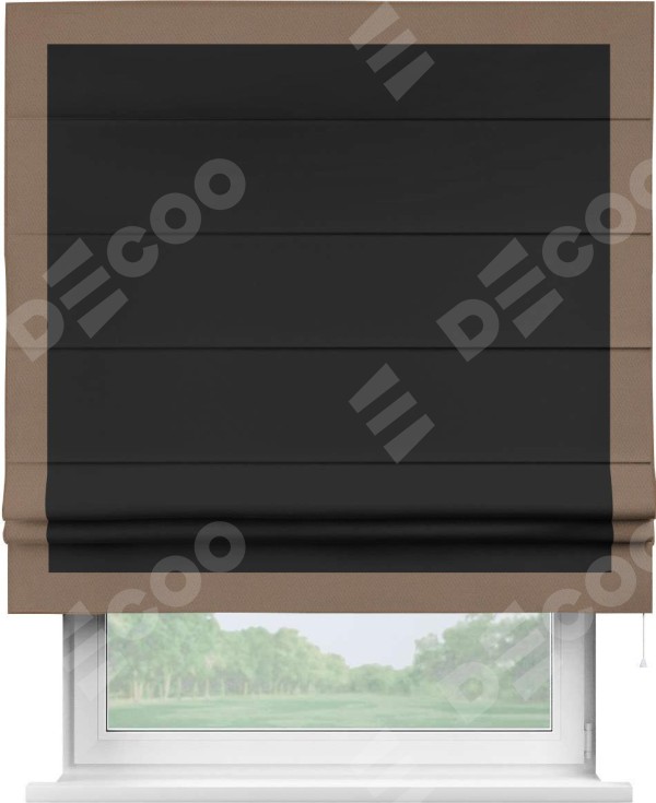 Римская штора «Cortin» для проёма, блэкаут однотонный черный с кантом Чесс