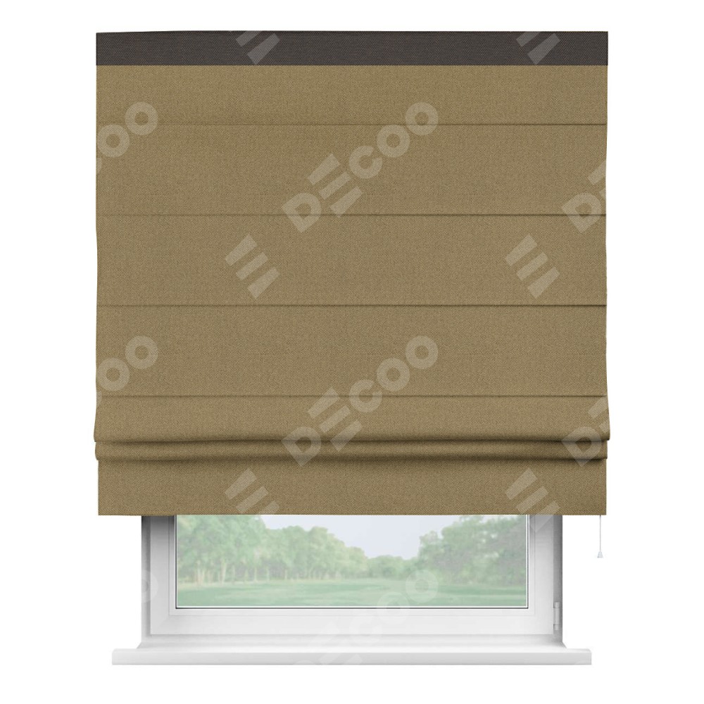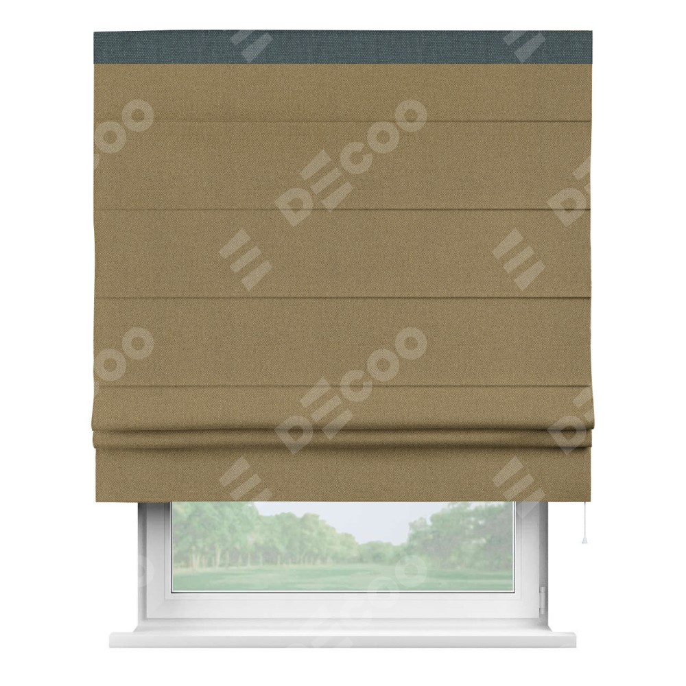 Римская штора «Кортин» с кантом Кинг, для проема, ткань лён димаут, оливковый