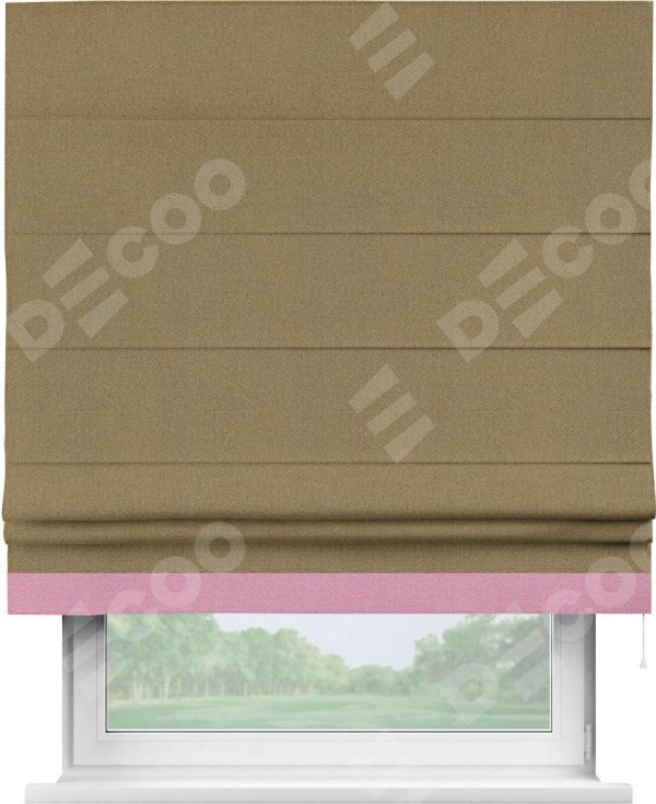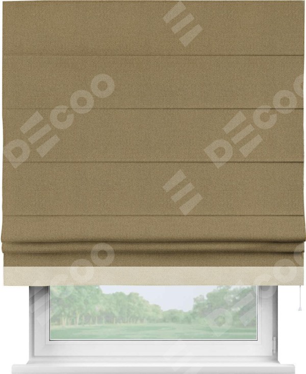 Римская штора «Кортин» с кантом Джестер, для проема, ткань лён димаут, оливковый