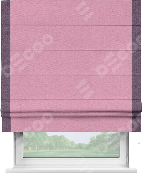 Римская штора «Кортин» с кантом Стрим Дуо, для проема, ткань лён димаут, розовый