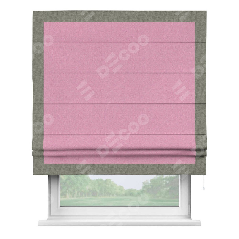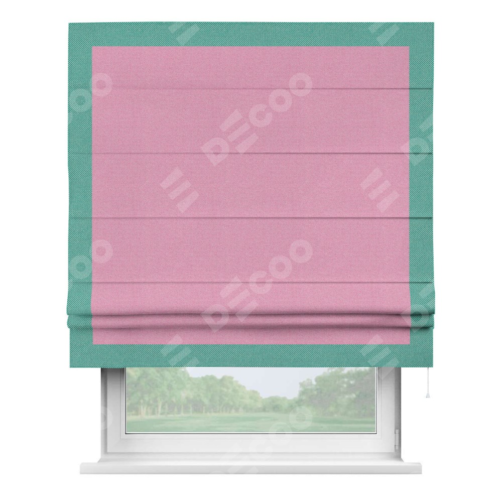 Римская штора «Кортин» с кантом Чесс, для проема, ткань лён димаут, розовый