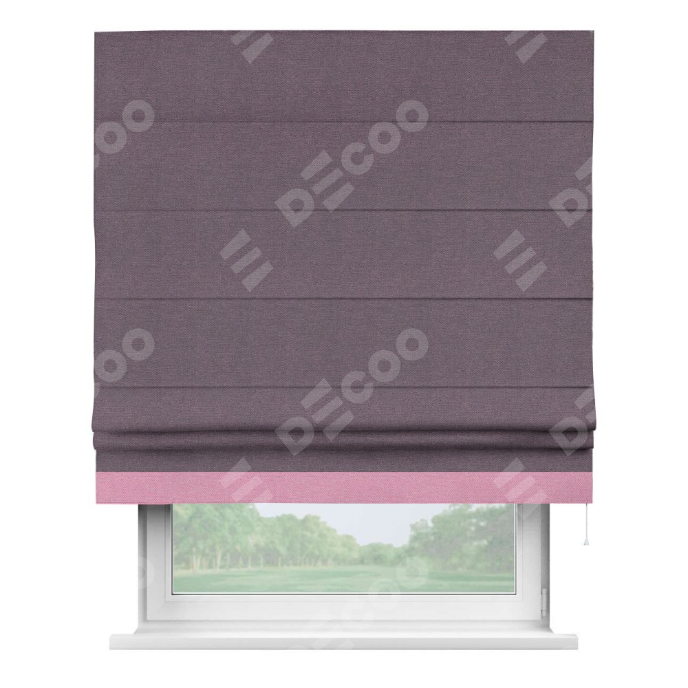 Римская штора «Кортин» с кантом Джестер, для проема, ткань лён димаут, светло-фиолетовый