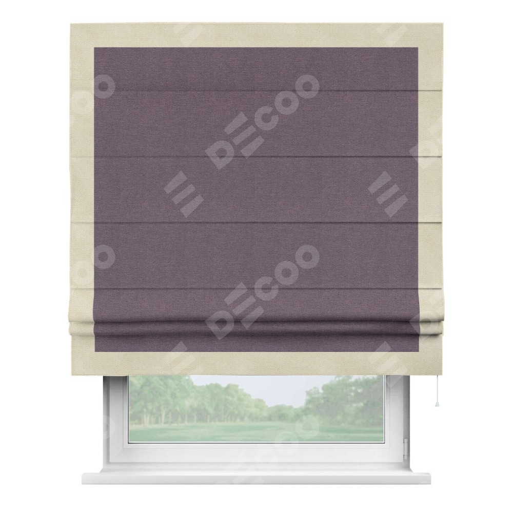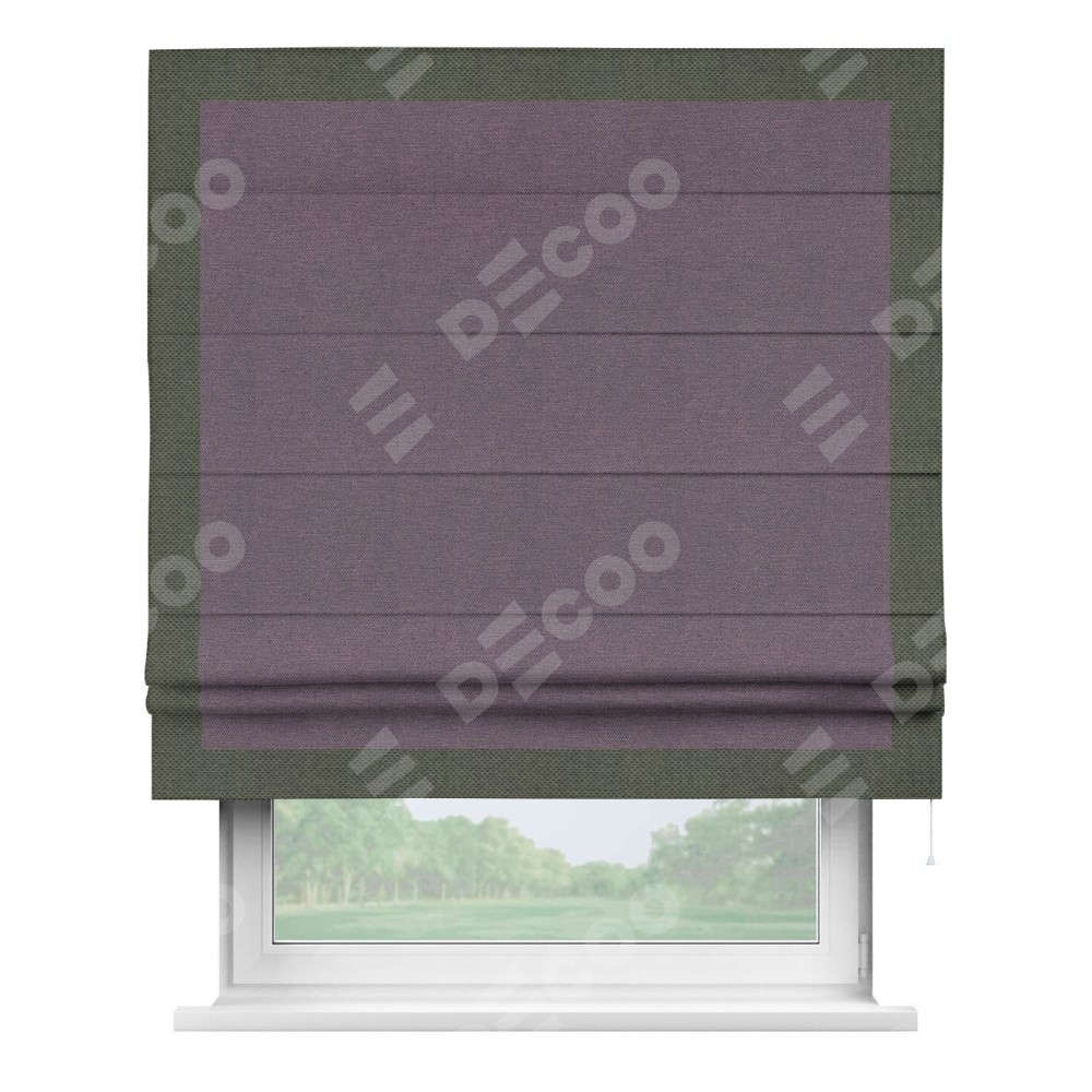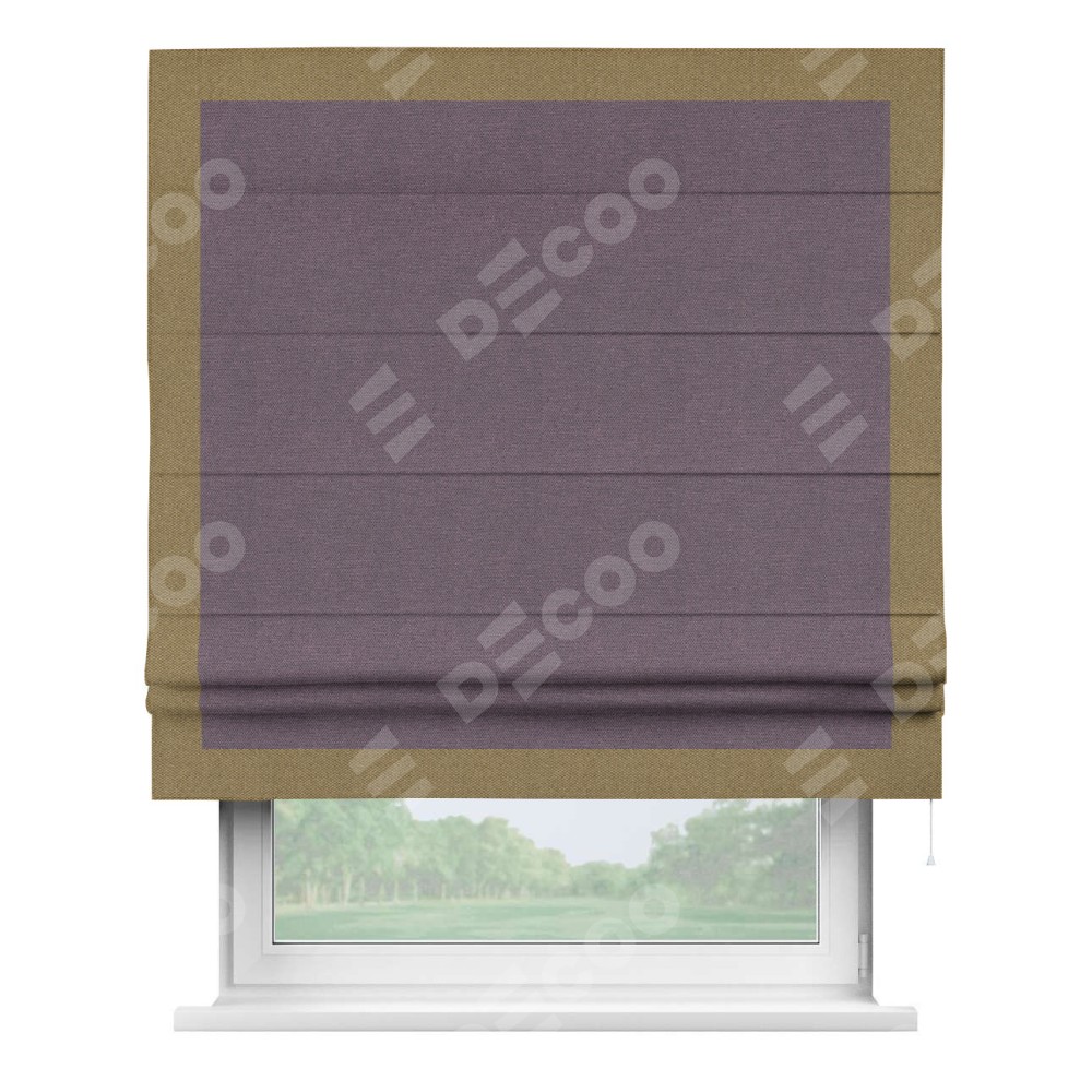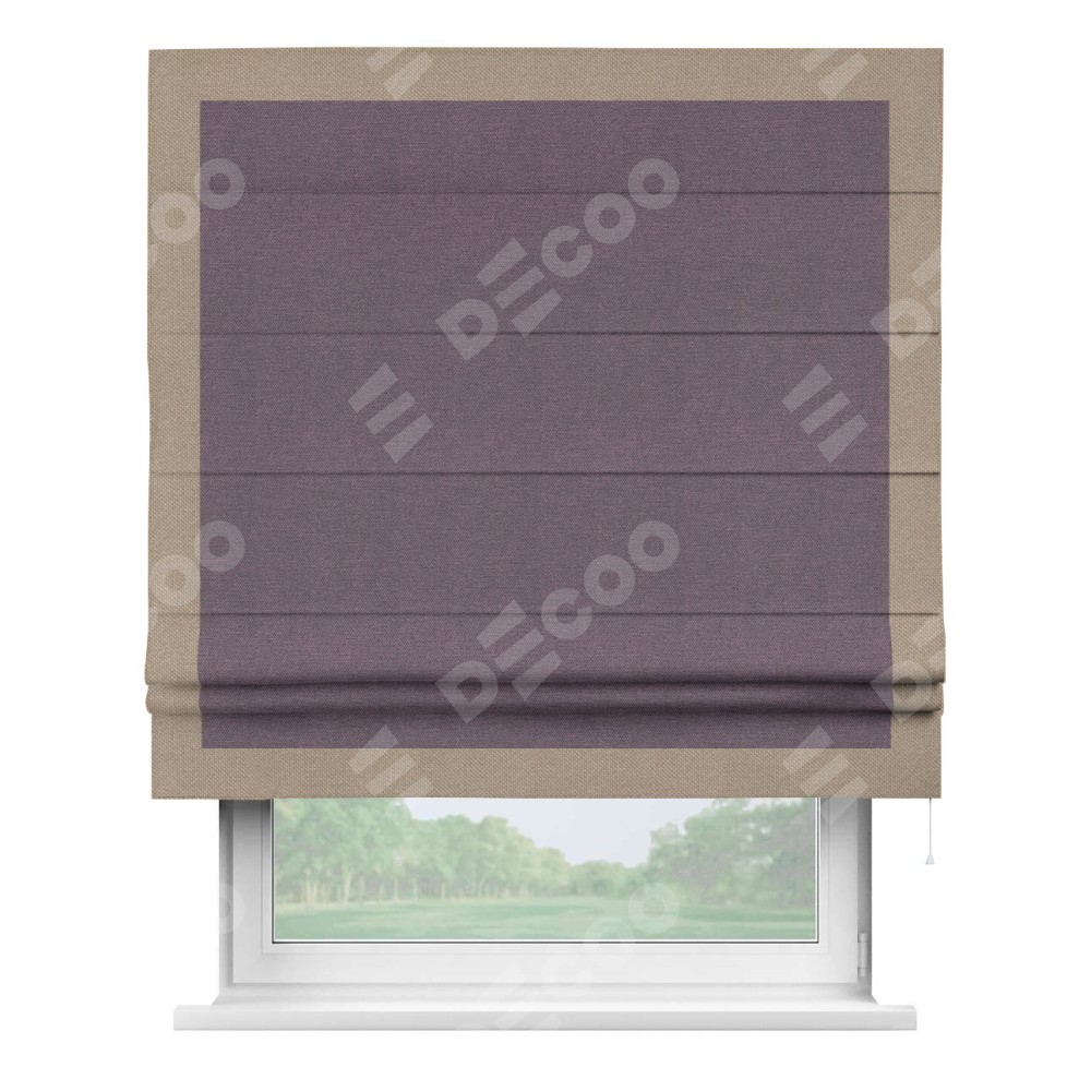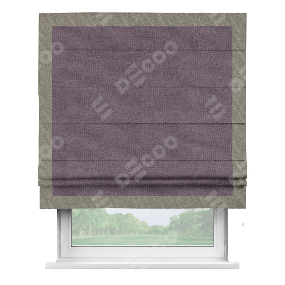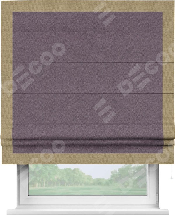 Римская штора «Кортин» с кантом Чесс, для проема, ткань лён димаут, светло-фиолетовый