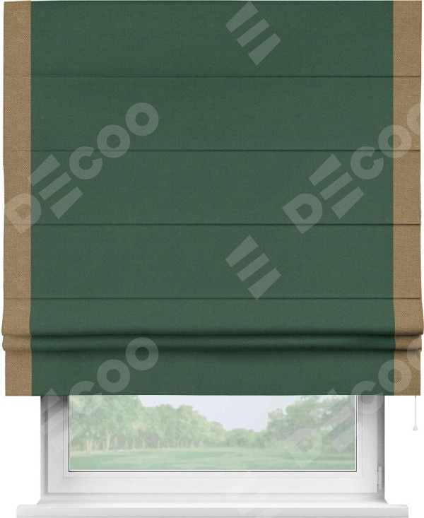 Римская штора «Кортин» с кантом Стрим Дуо, для проема, ткань лён димаут, тёмно-зелёный
