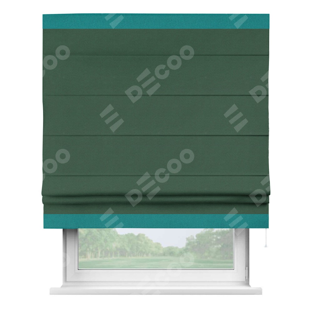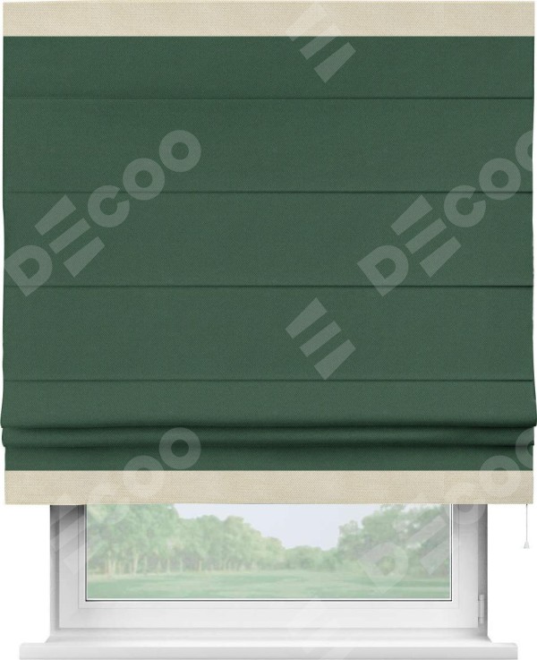 Римская штора «Кортин» с кантом Горизонт, для проема, ткань лён димаут, тёмно-зелёный