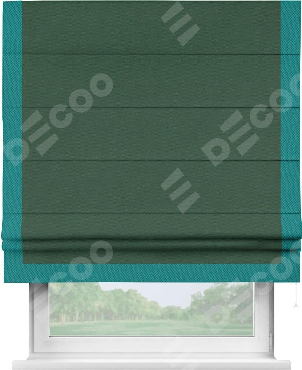 Римская штора «Кортин» с кантом Виктория, для проема, ткань лён димаут, тёмно-зелёный