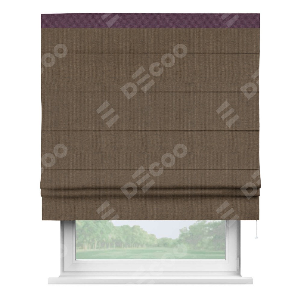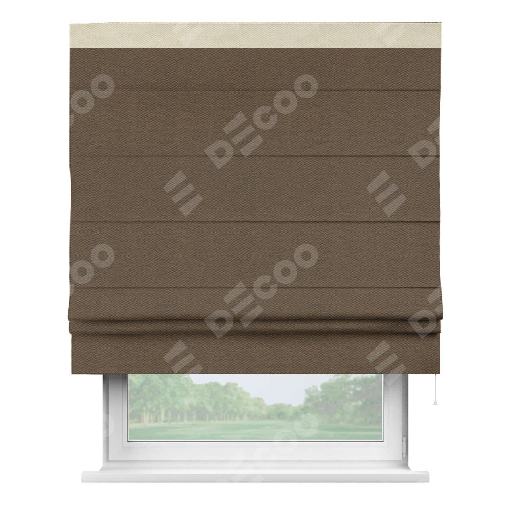 Римская штора «Кортин» с кантом Кинг, для проема, ткань лён димаут, тёмно-коричневый