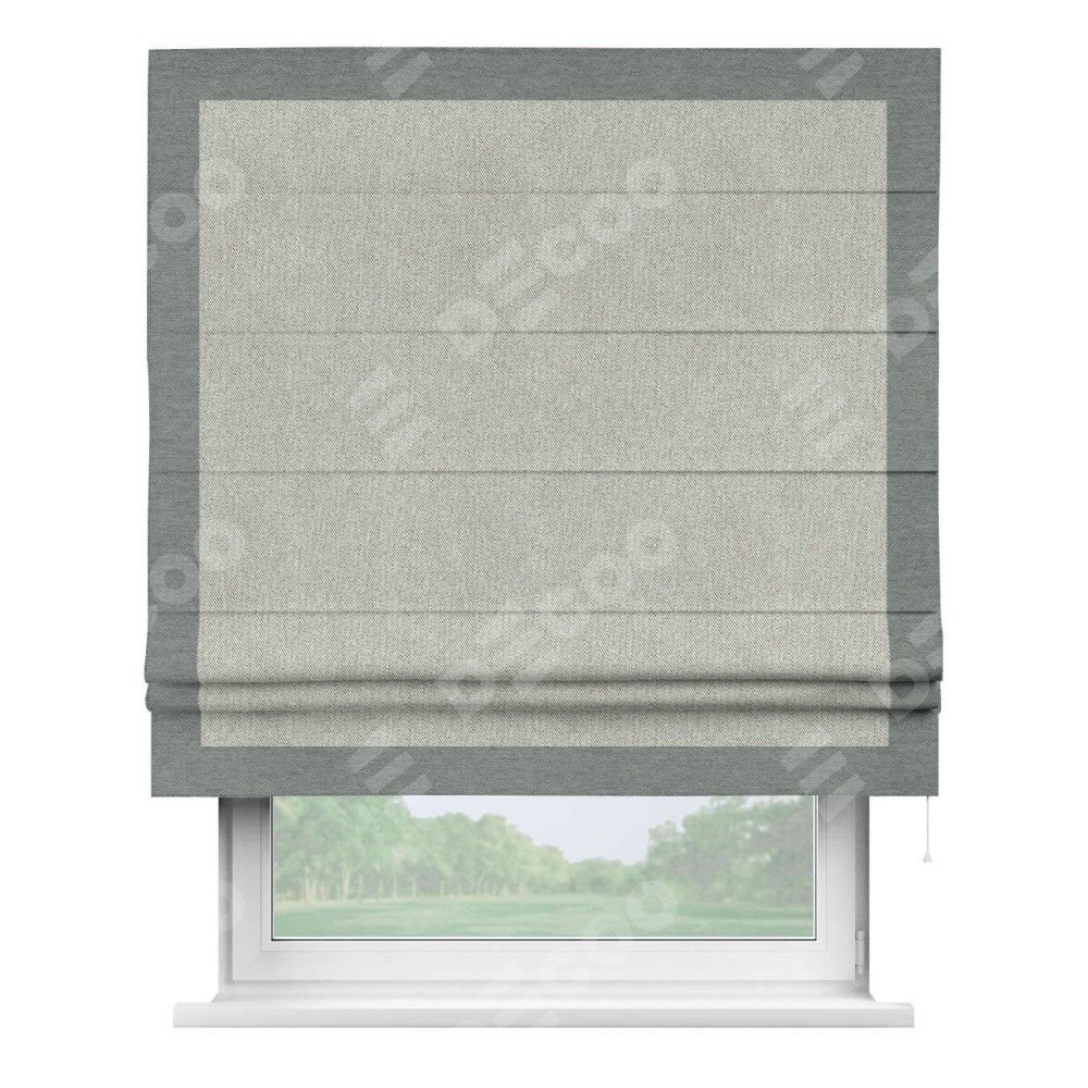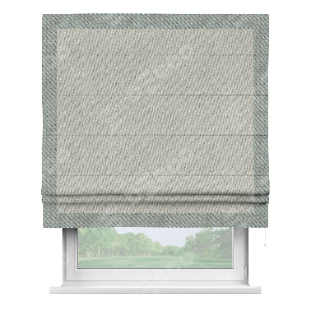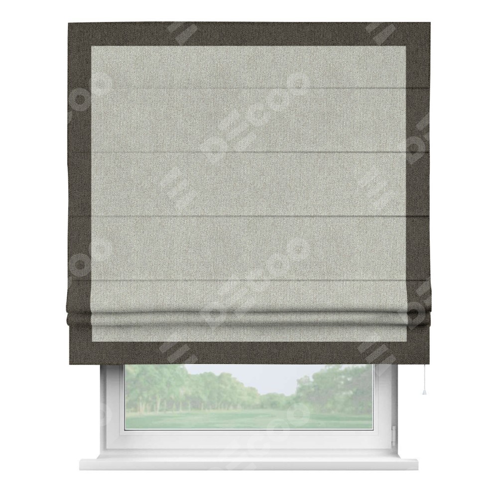 Римская штора «Кортин» с кантом Чесс, для проема, ткань твид блэкаут, коричнево-серый