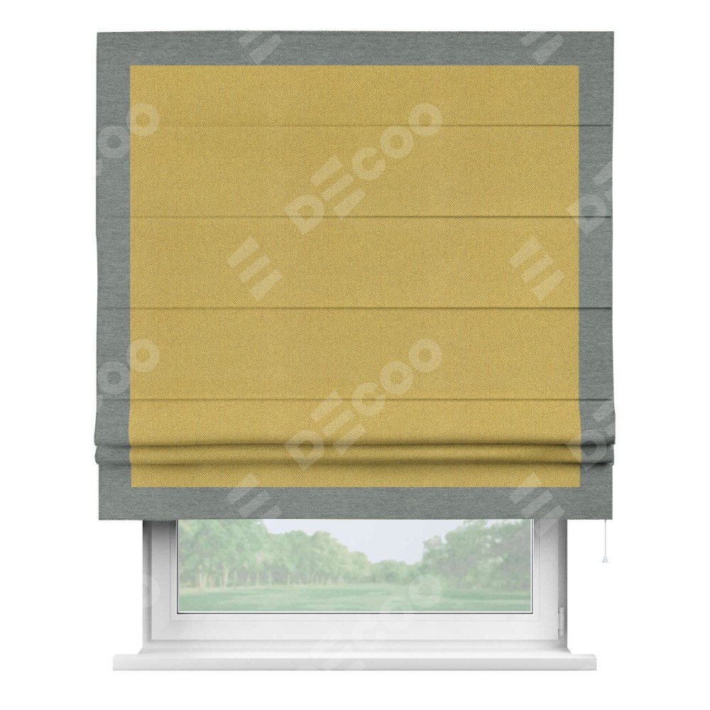 Римская штора «Кортин» с кантом Чесс, для проема, ткань твид блэкаут, пыльная горчица