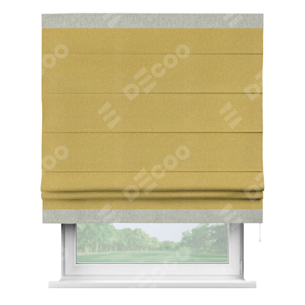 Римская штора «Кортин» с кантом Горизонт, для проема, ткань твид блэкаут, пыльная горчица