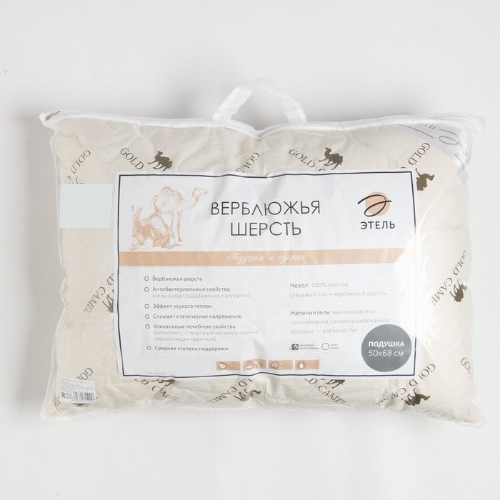 Подушка состоит из наполнителя из верблюжьей шерсти и нежнейшего лебяжьего пуха. Подушка не только обеспечивает правильное положение тела ночью, но и: