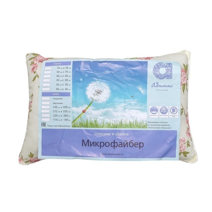 Подушка Адамас синтетическая, размер 40×60 см, холлофайбер, чехол МИКС