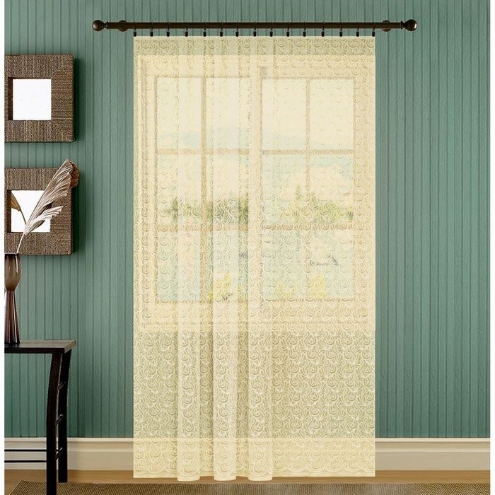 Штора, ширина 300 см, высота 280 см, с шторной лентой, цвет ваниль