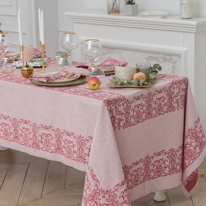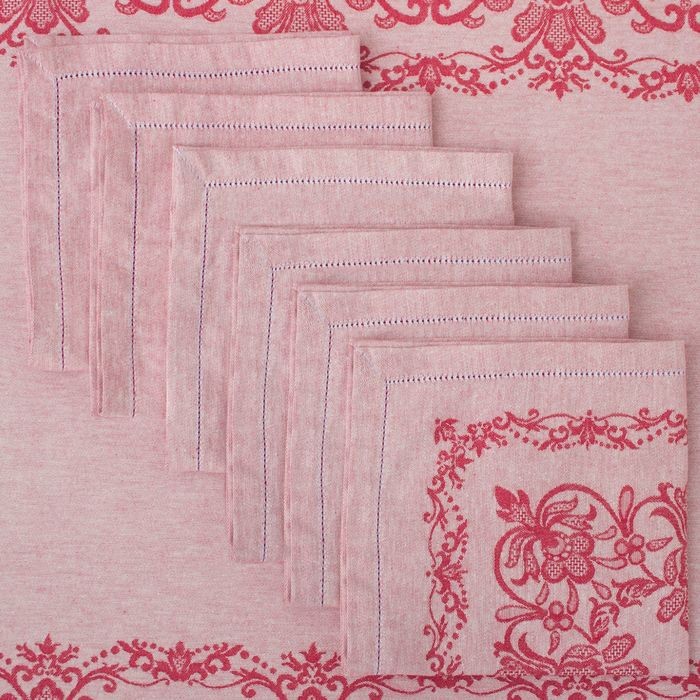 Столовый набор «Этель» (скатерть 150×300 см, салфетки 45×45 см — 12 шт.) цвет бордо, хл. с ВМГО