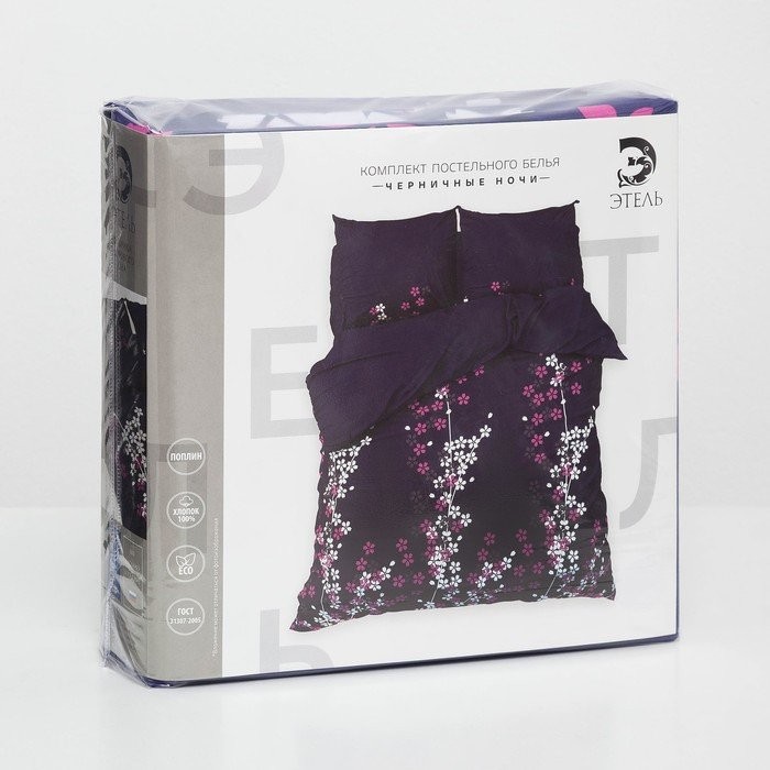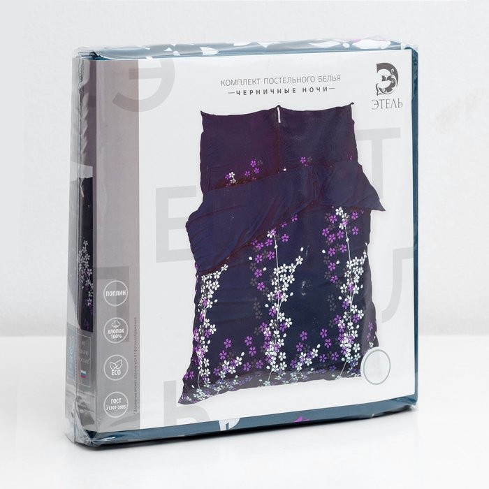 Постельное бельё «Этель» евро Черничные ночи, размер 200×217 см, 240*220 см, 70×70 — 2 шт., 100% хлопок, поплин, 125 г/м2