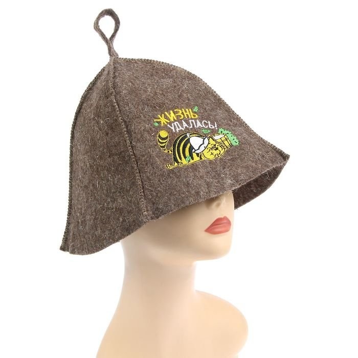 Шапка сшита из войлока с использованием натуральной шерсти — материала, который обладает низкой теплопроводностью. Поэтому она надёжно защитит голову и волосы от жара. Уникальный дизайн, оригинальная форма и надпись порадуют вас и окружающих.