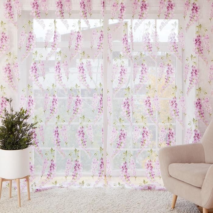 Тюль «Этель» Виноградная лоза (лиловый) без утяжелителя, ширина 135 см, высота 270 см