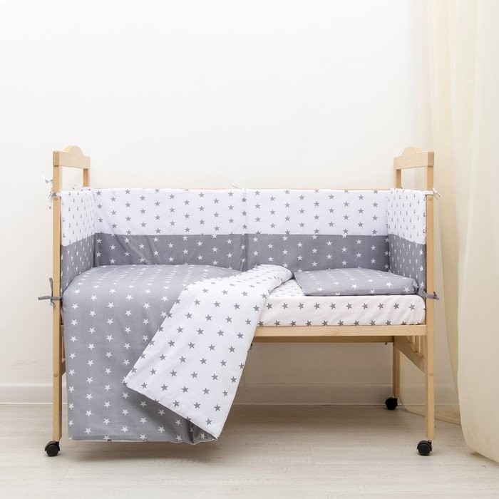 Борт в кроватку «День и ночь», из 4-х частей, чехлы съемные, цвет серый, бязь хл100%
