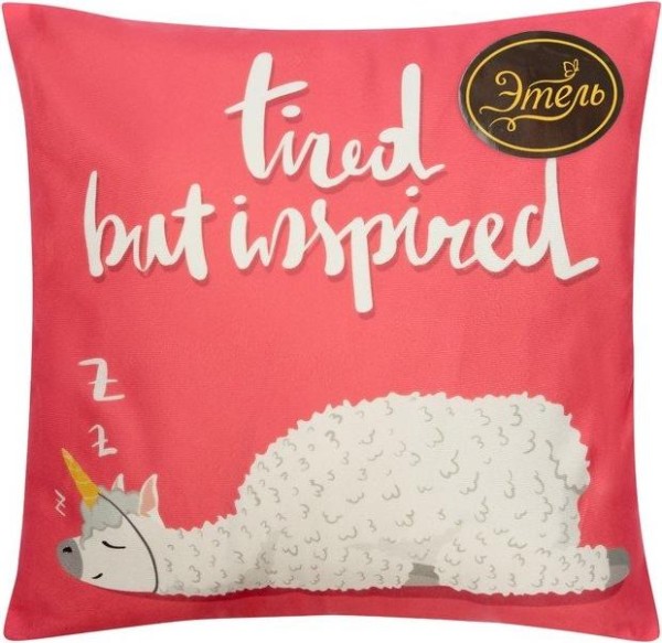Наволочка Этель «Tired but inspired» 40×40 см, велюр