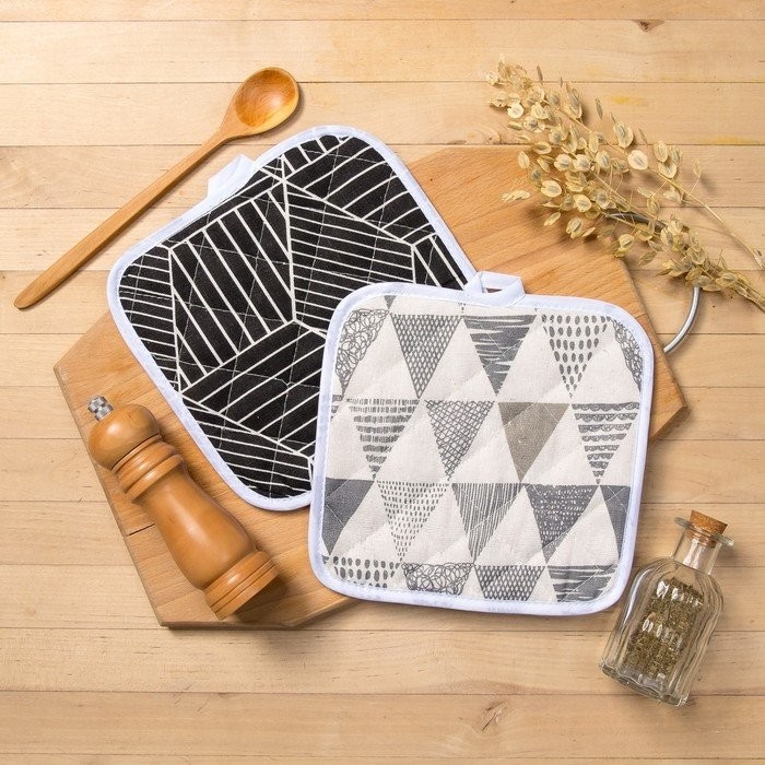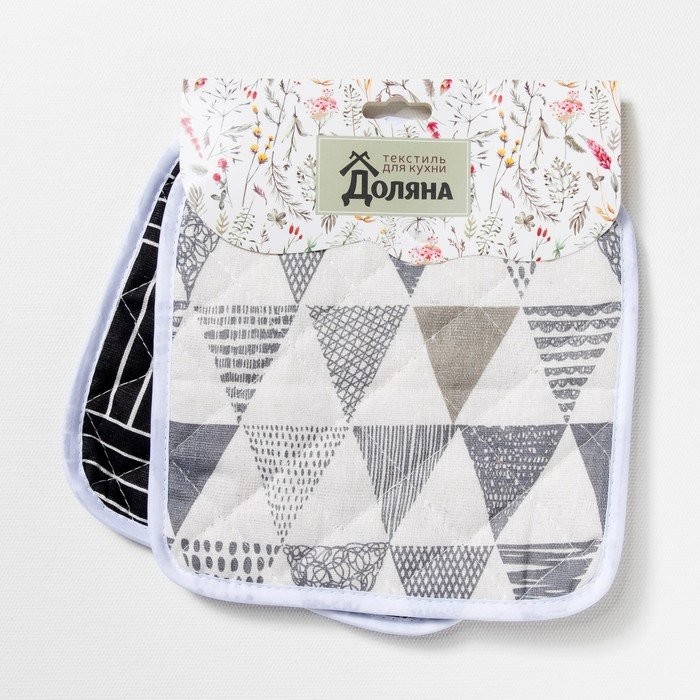 Набор Доляна, прихватка 2шт Тренд черн/Треугольники, 100%пэ, рогожка 200 гр/м