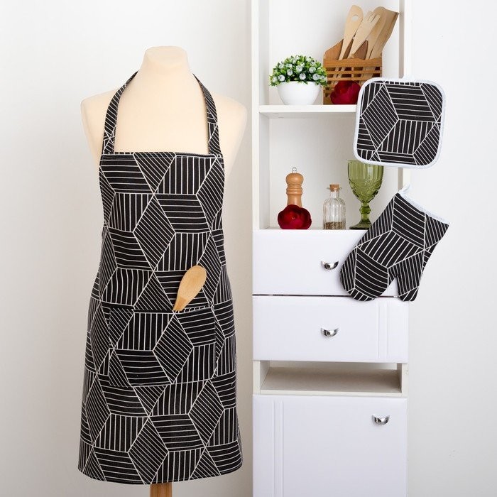Набор Доляна фартук/прихватка/варежка, Тренд черн, 100%пэ, рогожка 200 гр/м