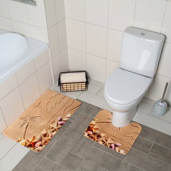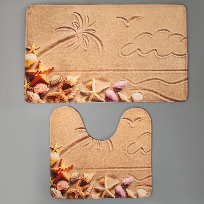 Набор ковриков для ванны и туалета Доляна «Пляж», 2 шт: 40×45, 45×75 см