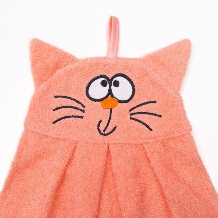 Полотенце-рушник махровый «Котик», 43×35 см, персик, хл100%, 300 г/м²