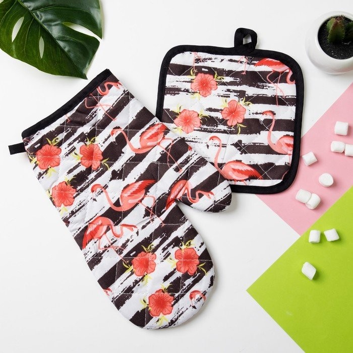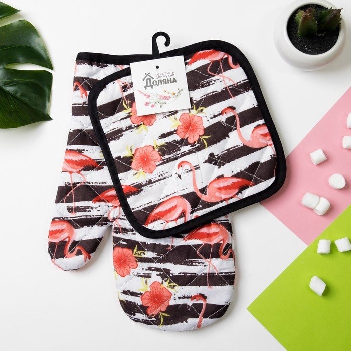 Кухонный набор Доляна «Фламинго»,прихватка 16*16 см, рукавица 25*16 см,100% п/э