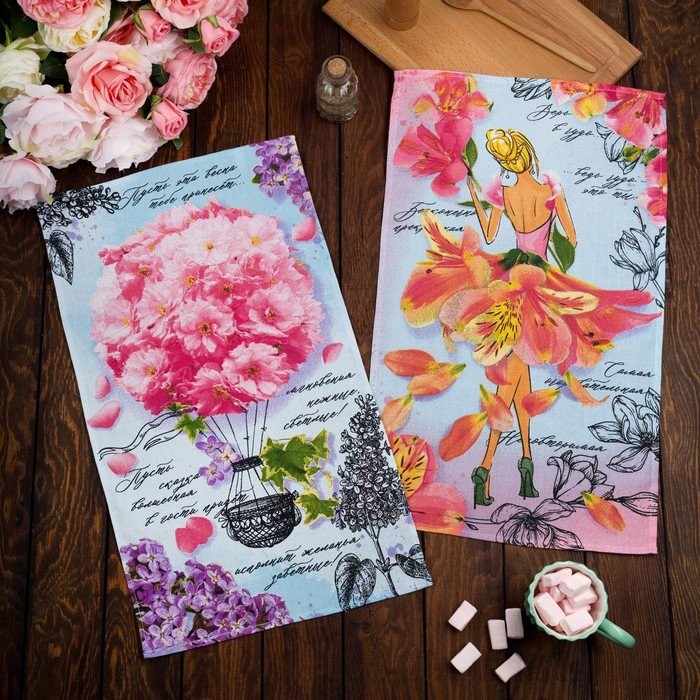 Полотенце кухонное Доляна «Волшебная весна» 34×60 см, рогожка, 100% хлопок, 160 гр/м