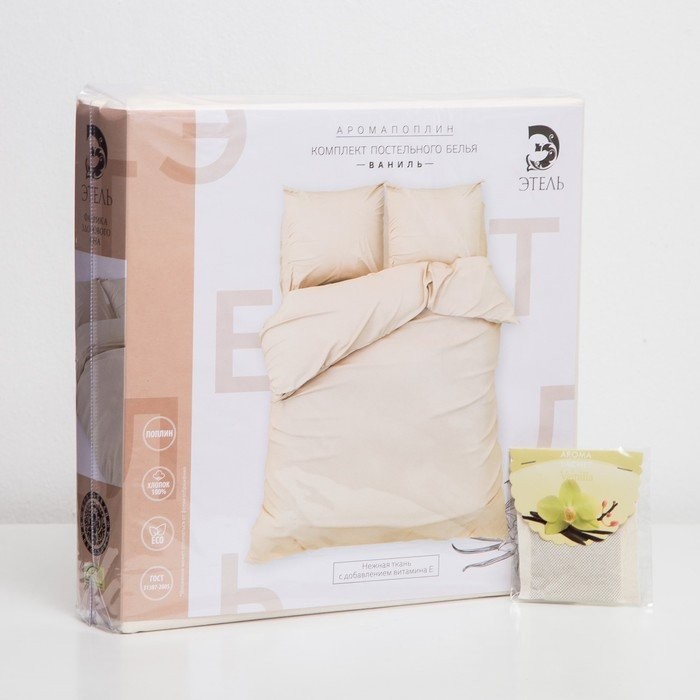Постельное бельё «Этель» евро Арома Поплин 200×210 см, 240*220 см, 50×70 см — 2 шт., Ваниль, 125 г/м², 100% хлопок