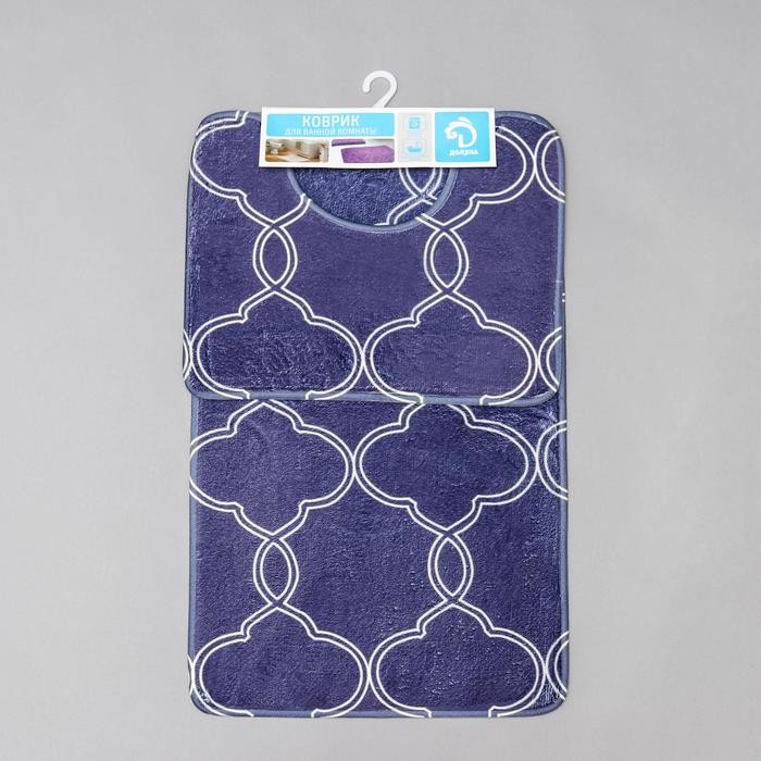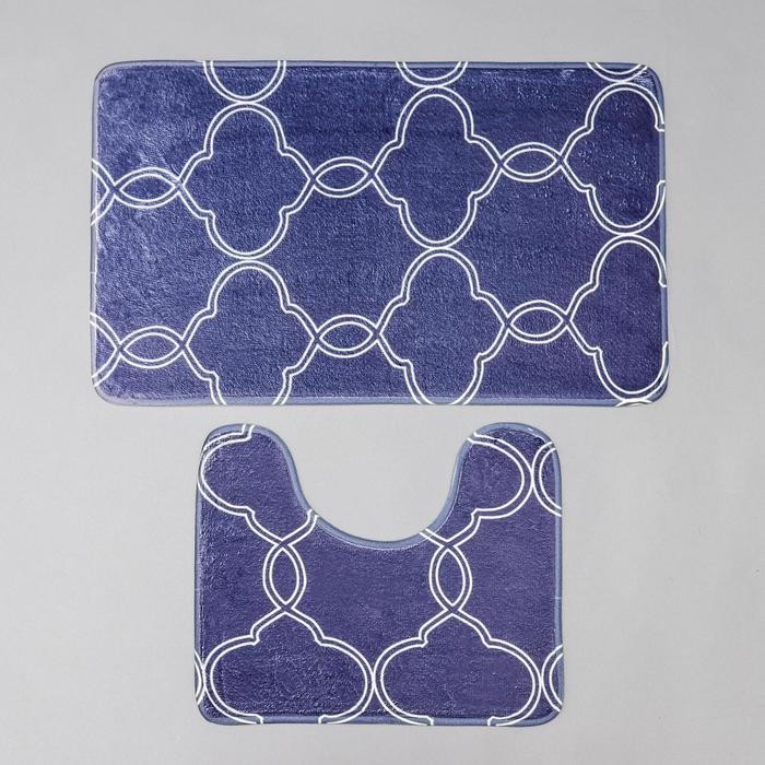 Набор ковриков для ванны и туалета Доляна «Виньер», 2 шт: 44×50, 50×80 см, цвет синий