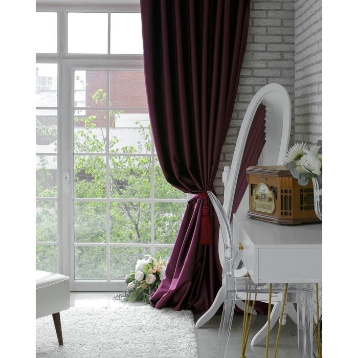 Штора портьерная «Этель» 250×265 см, двусторонний блэкаут, цвет Сливовый, пл.240г/м², 100 п/э