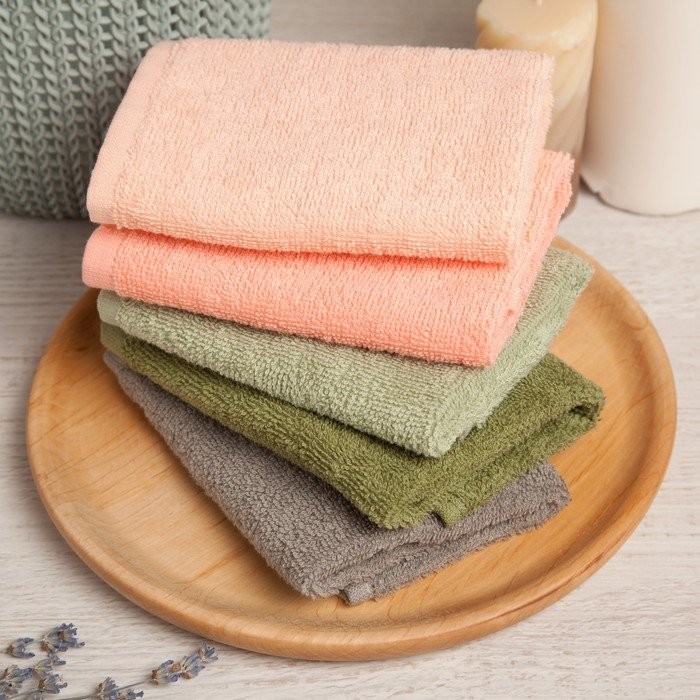 Набор махровых салфеток «Здесь живет счастье» 30×30 см -5шт