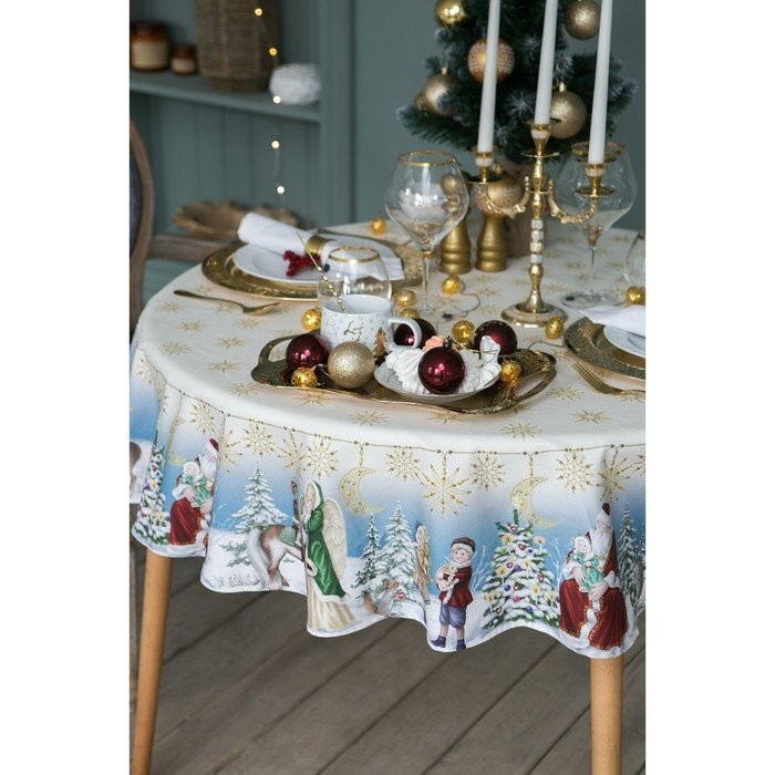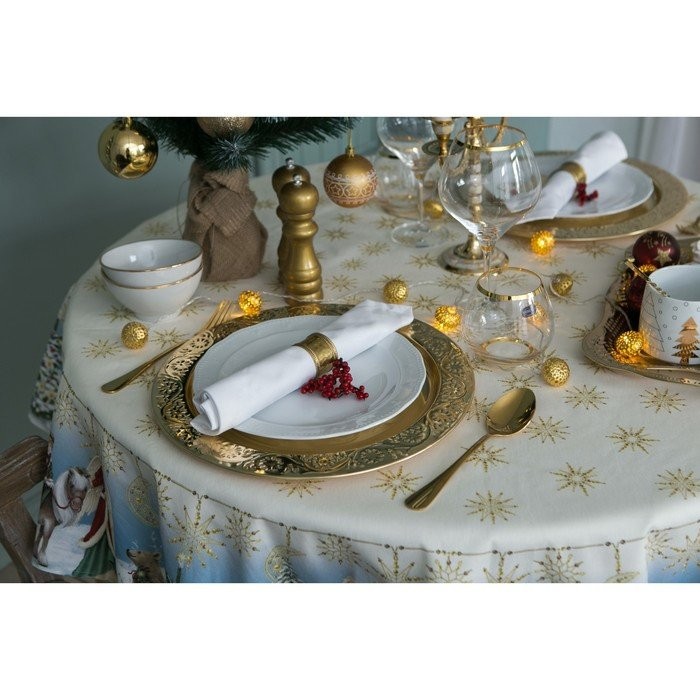 Скатерть «Этель» Christmas time d=150см +/-3см с ГМВО, 100%хл, саржа 190 гр/м2