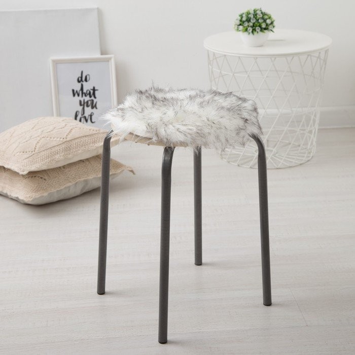 Сидушка на стул меховая Доляна «Пушинка» цв.белый/черный d 30 cm,100% п/э