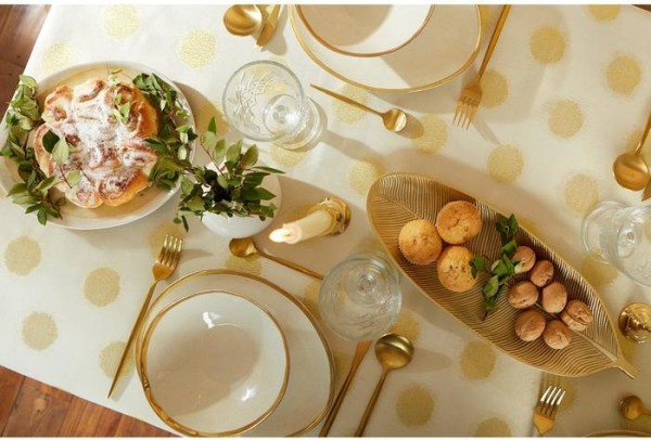 Скатерть Этель «Золотые шарики» цв.золотой, 150*280 см, 115 ±10 гр,100% п/э
