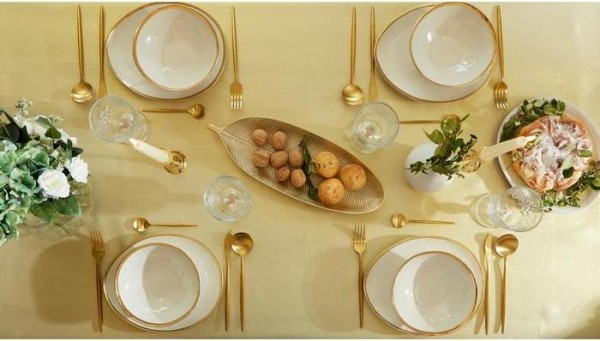 Скатерть Этель «Пудра» цв.золотой, 150*180 см, 115 ±10 гр,100% п/э