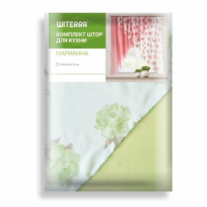 Комплект штор для кухни «Марианна», размер 300×160 см, цвет зелёный