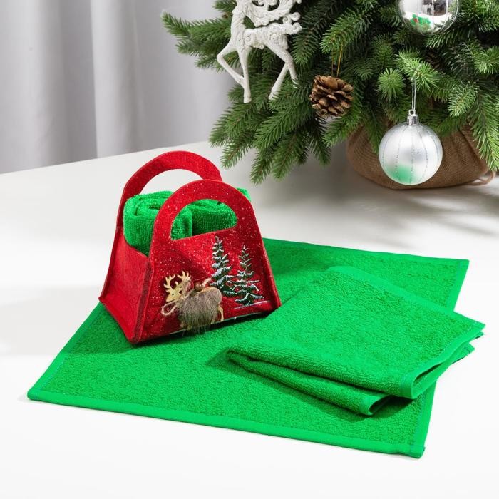 Набор полотенец в корзинке Этель «Новый Год» 30×30 см-2 шт