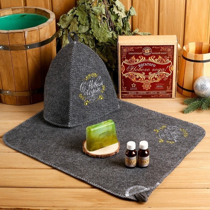 Подарочный набор «Богатого Нового года!»: шапка, коврик, 2 масла, мыло