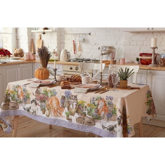Скатерть «Этель» Уютные коты180×147 см, 100% хлопок, саржа 190 г/м2