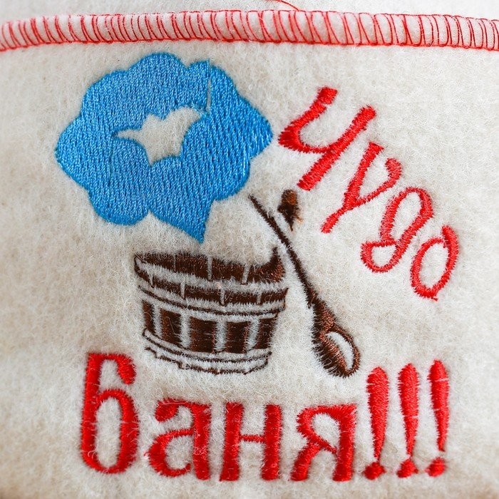 Шапка для бани с отворотом «Чудо баня» с вышивкой, белая, войлок