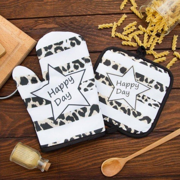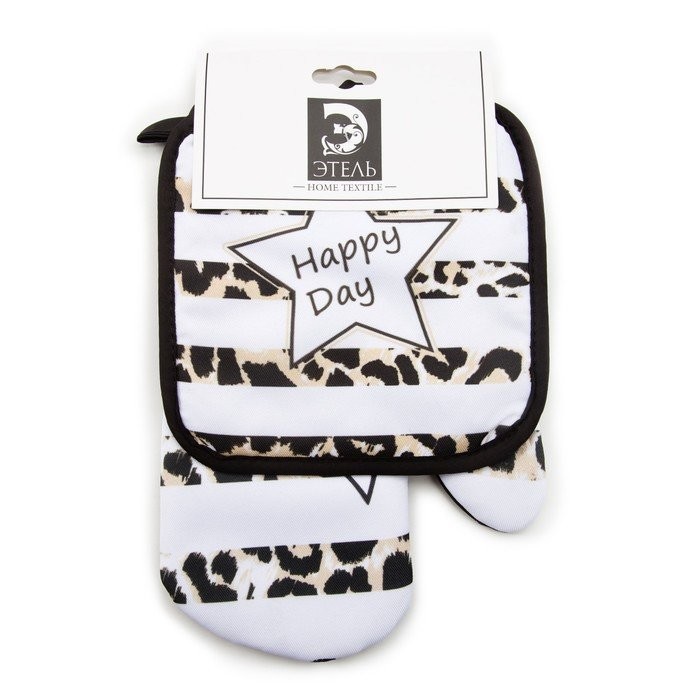 Кухонный набор (2 предмета) Этель LoveLife Happy, прихватка 17×17 см, рукавичка 26×16 см, 100% п/э