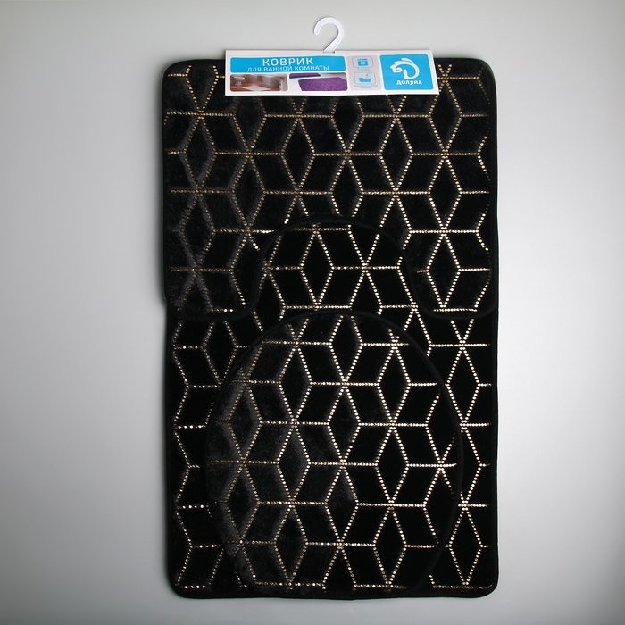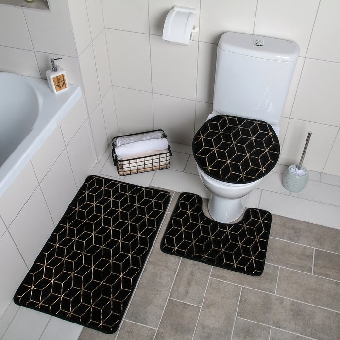 Набор ковриков для ванны и туалета Доляна «Геометрик», 3 шт: 35×40, 40×50, 50×80 см, цвет чёрный